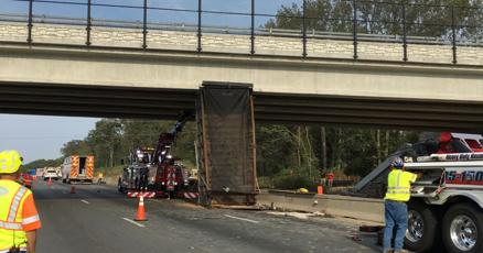 Three northbound passenger vehicles smashed into the divider and each. A tractor-trailer driven by Kirisanthan Senathi 24 of Scarborough Ont crumpled after. The truck hit the CSX bridge that crosses over South Flowers Mill Road between Maple Avenue Route 213 and East Lincoln Highway in Middletown around 150 pm.