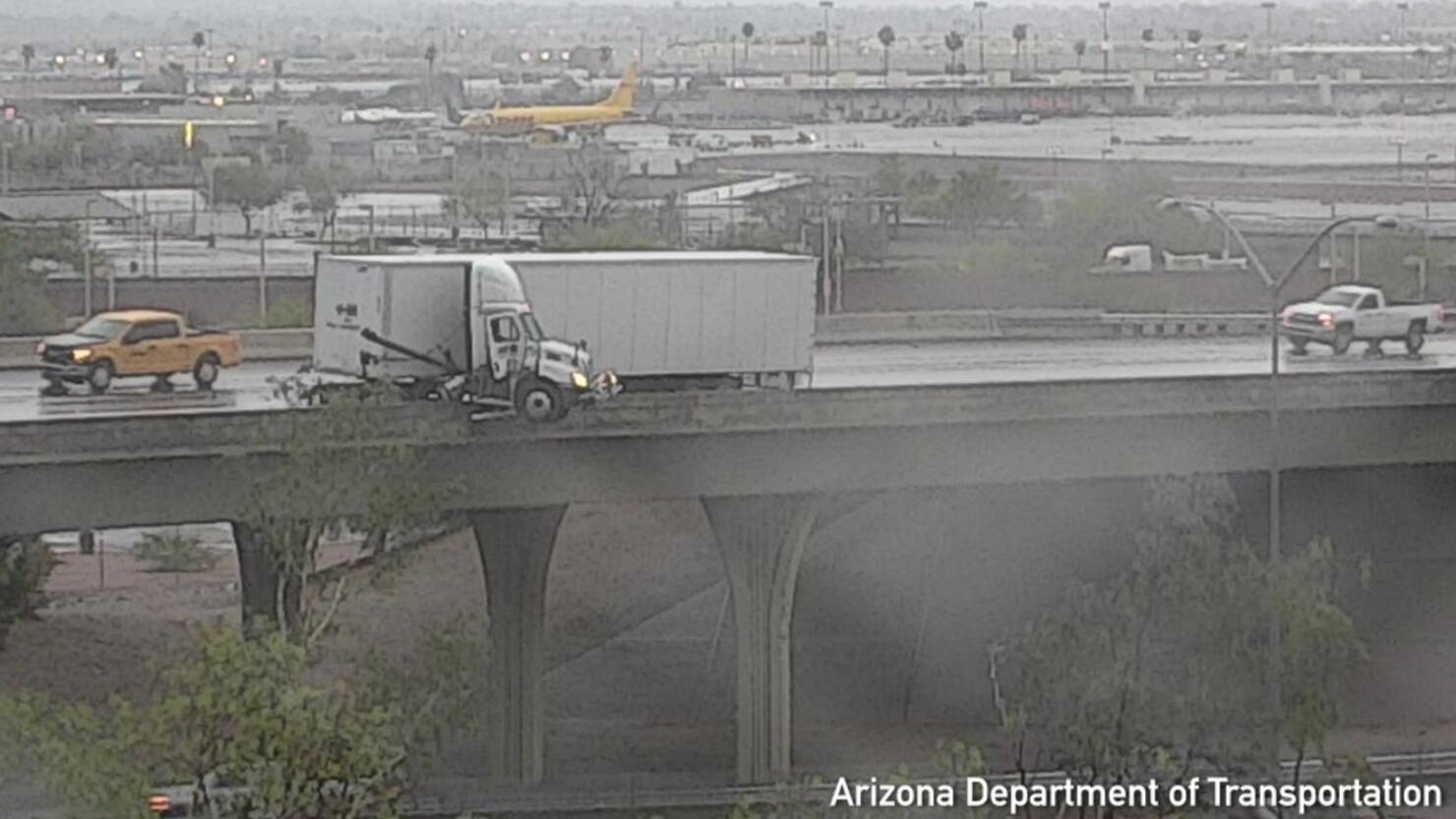 Photos Semi Truck Dangles From Edge Of I 17 Bridge In Phoenix After Storm Iheart